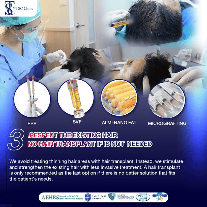 These five philosophies serve as a safeguard to prevent you from making the wrong decisions regarding hair transplantation. If you are facing problems with hair loss or hair thinning, do not allow the condition to progress to the point where it becomes difficult to treat. You can consult a team of specialist doctors at THE SKIN CLINIC, because proper treatment begins with an accurate and precise diagnosis.