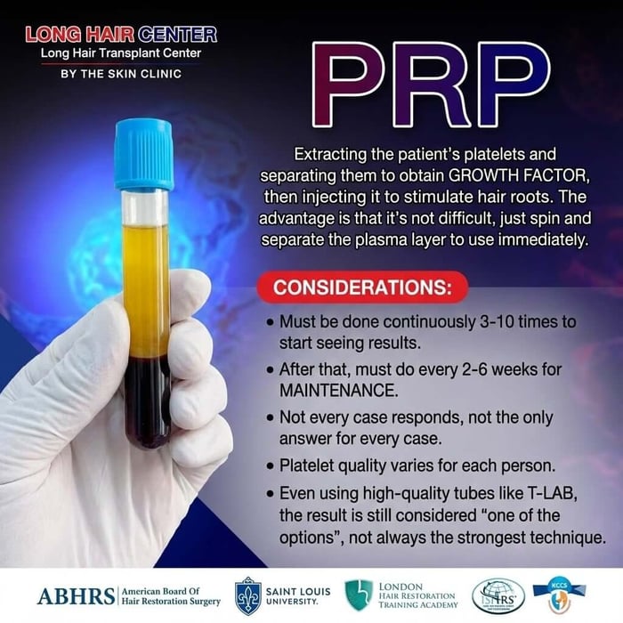 Blood is taken from the patient and centrifuged to obtain a high concentration of platelets rich in growth factors. The solution is then injected into the scalp to stimulate follicle activity.