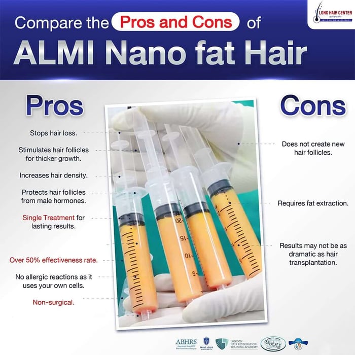 Fat is harvested from the patient and processed into nano-sized particles rich in stem cells and anti-inflammatory proteins. These help deeply rejuvenate hair follicles, reduce shedding, and strengthen thinning hairs.